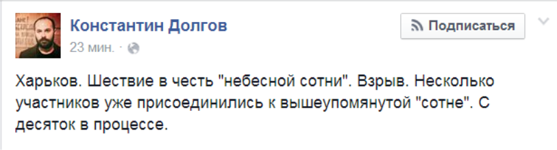 Сегодня в Харькове во время мирной демонстрации произошёл взрыв. Погибли люди. Были очевидцы, снявшие момент взрыва на видео.